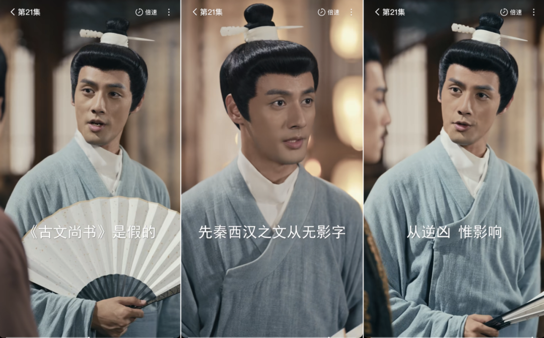 ▲《冒姓琅琊》中的“古今文《尚书》之辩”片段截屏。(资料图)